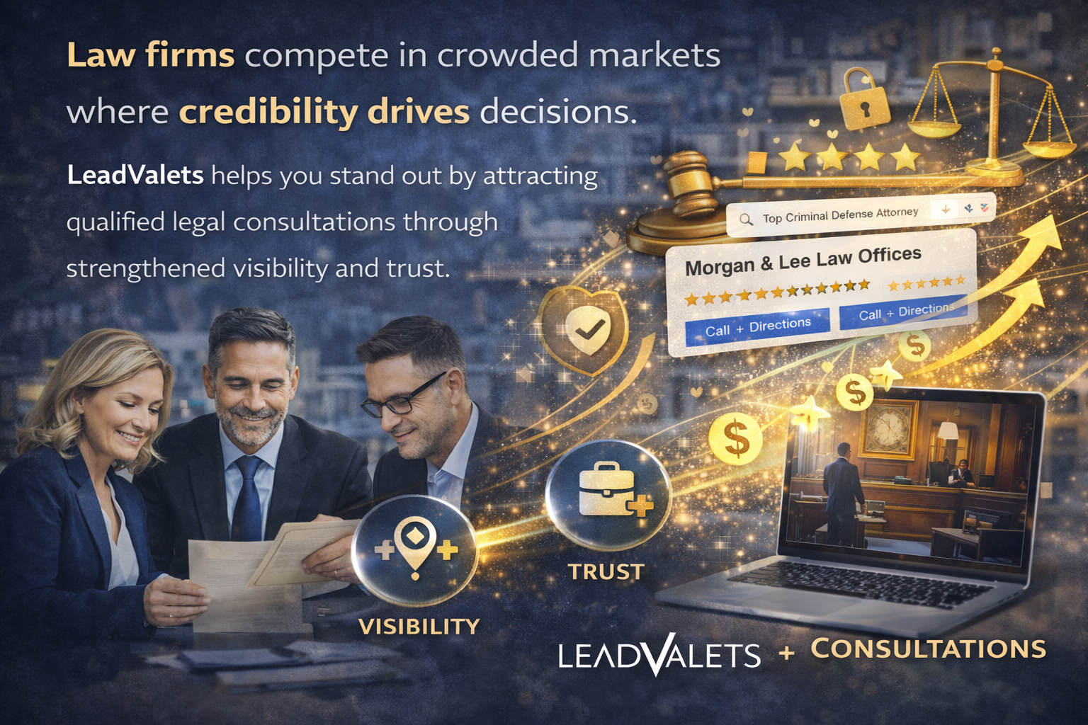 Law firms compete in crowded markets where credibility drives decisions. LeadValets helps you stand out by attracting qualified legal consultations through strengthened visibility and trust.